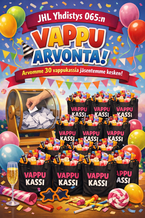 Yhdistys arpoo tulevan vapun kunniaksi osallistujien kesken 30 vappukassia, joiden sisältö on herkullinen, värikäs ja iloinen.
